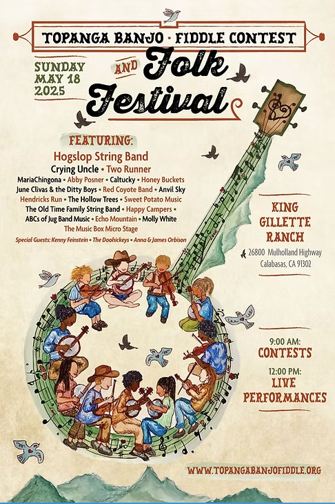 Come support Songmakers and Topanga Banjo Fiddle Contest and Festival by participating in one of our workshops and/or song circles! Bring a song, sing along, play along! Check out the list of events we have planned!