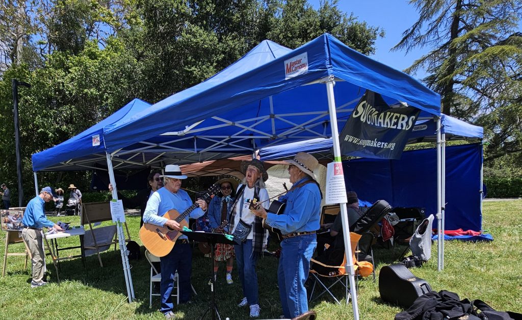 We are also looking for volunteers! Can you commit to hanging out at the Songmakers site to keep an eye on everyone’s equipment while those who plan to be there most of the day take a break from Noon-1pm. You are of course more than welcome to play, sing, jam with anyone comes by. Help set up tear down the pop-up site. You are invited to join the small crew who plans to set up pop ups, chairs, tables, etc on Saturday. We will also need help breaking “camp” on Sunday afternoon. Many hands make light work!